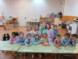 Asique hoy lo hemos celebrado y además coincidiendo con el primer día que estamos en nuestro "nuevo cole" debido a las obras que han comenzado en el centro escolar.